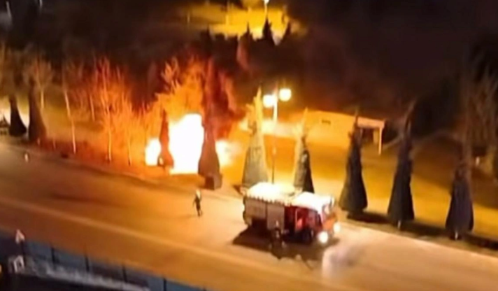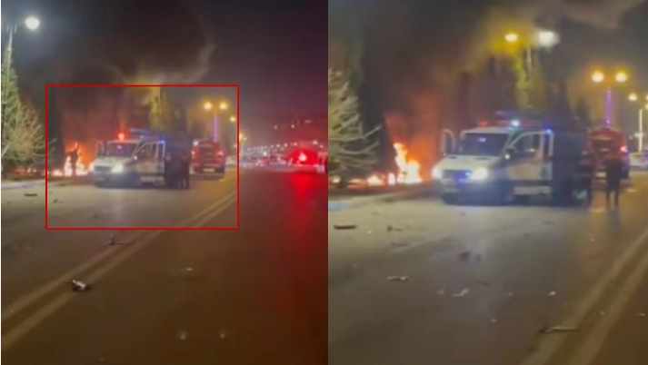 Sumqayıtda iki avtomobilin toqquşması nəticəsində biri yanıb