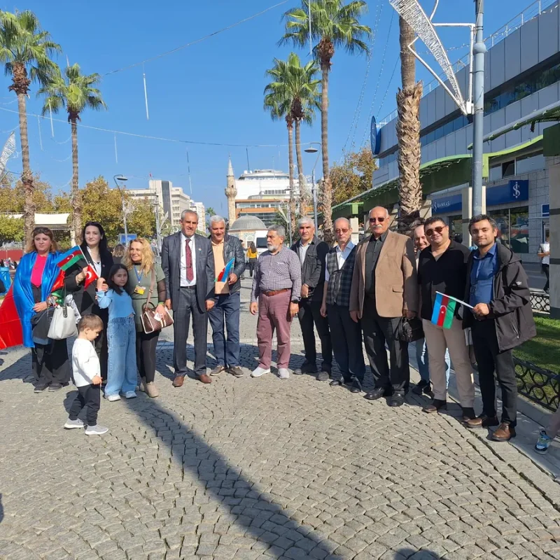 Türkiyə-Azərbaycan Dərnəkləri Federasiyasına bağlı İzmir Azərbaycan Mədəniyyət və Həmrəylik Dərnəyi 8 Noyabr Qarabağ Qələbəsinin ildönümü münasibətilə Konak meydanında şəhidlər üçün anım tədbiri təşkil edib.