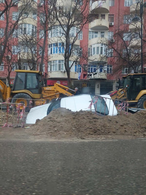 Sumqayıtda avtomobil qazılan çuxura düşdü - FOTO