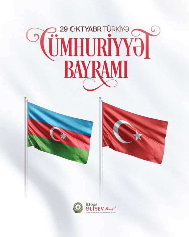 "Əziz Qardaşım, Qardaş Türkiyə Respublikasının milli bayramı – Respublika Günü münasibətilə Sizi və Sizin simanızda bütün Türkiyə xalqını şəxsən öz adımdan və Azərbaycan xalqı adından ürəkdən təbrik edir, ən səmimi və xoş arzularımı çatdırıram", - paylaşımda deyilir.