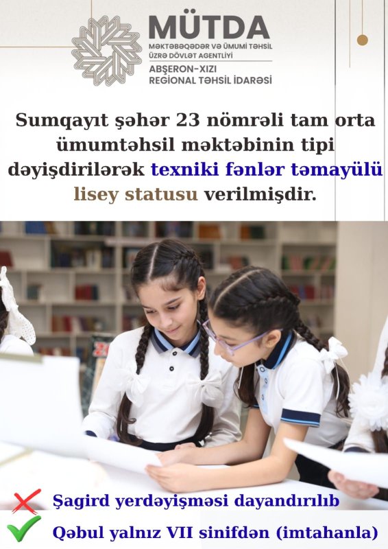 Sumqayit.tv xəbər verir ki, bu barədə məlumatı Abşeron‑Xızı Regional Təhsil İdarəsi açıqlayıb.