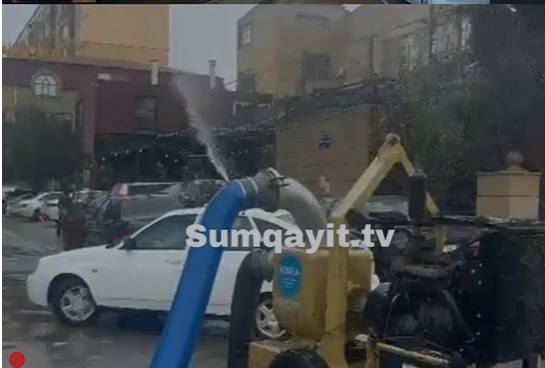 Sumqayıtda yağışın yaratdığı fəsadların aradan qaldırılması istiqamətində işlər davam edir-FOTO