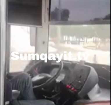 Sumqayıtda ŞOK: avtobus sürücüsü sükanı ayaqları ilə idarə etdi-VİDEO