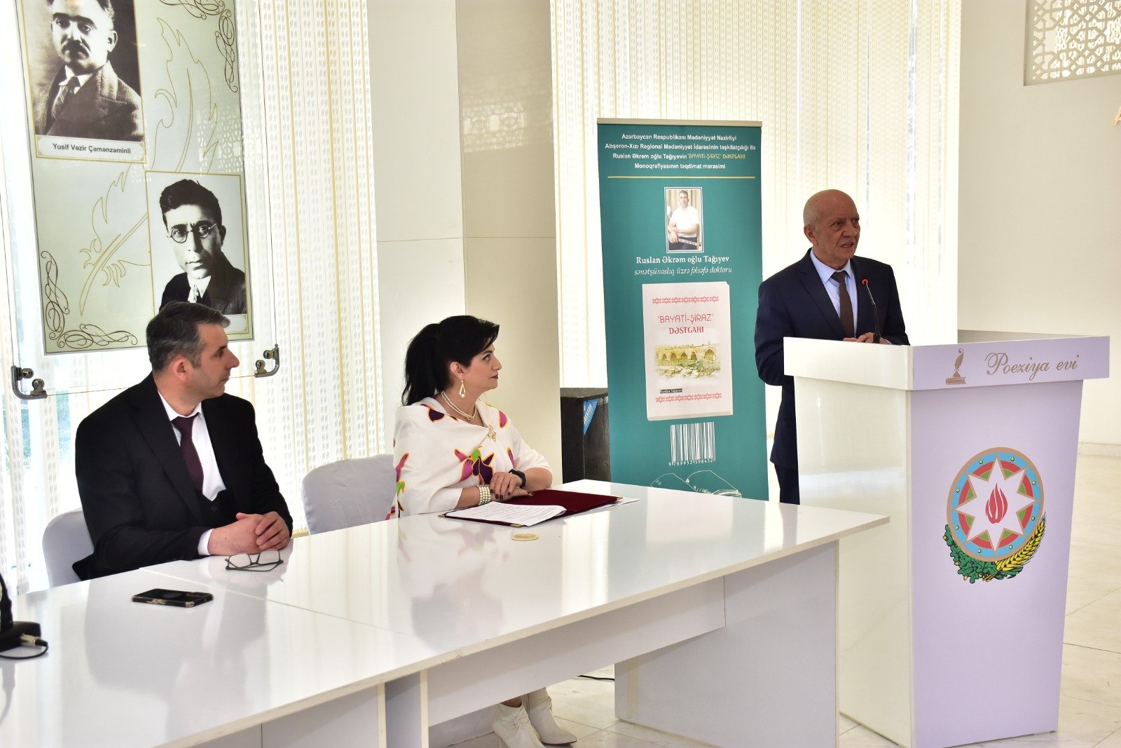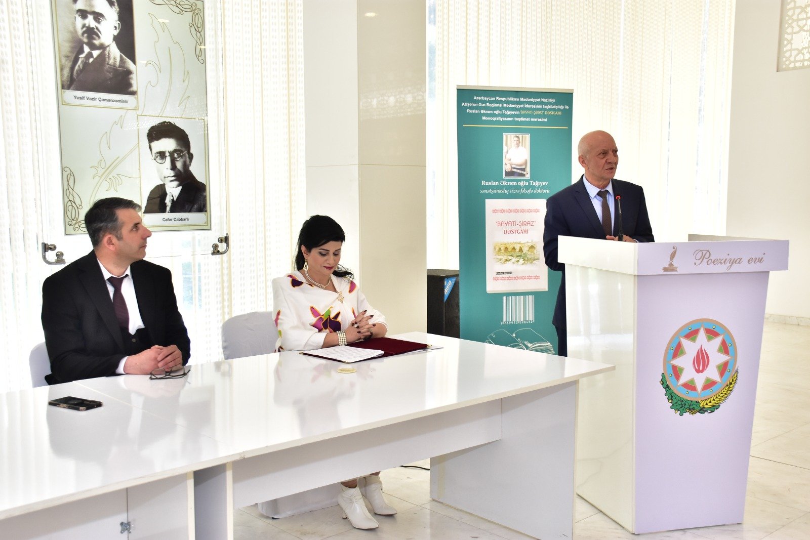 Söz alan natiqlər Sənətşünaslıq üzrə fəlsəfə doktoru, gənc alim Ruslan Tağıyevin musiqi məktəbi, bakalavr, magistr və doktorantura təhsili illərində əldə etdiyi zəngin bilik və təcrübə onun sənət yolunun formalaşmasında mühüm rol oynamasından danışdılar. “Bayatı-Şiraz” dəstgahı kitabının ərsəyə gəlməsi, Azərbaycan muğamlarının ustad sənətkarların zəhməti sayəsində əsrlərdən süzülərək bu günümüzə qədər gəlib çatması barədə fikirlərini bölüşüblər.