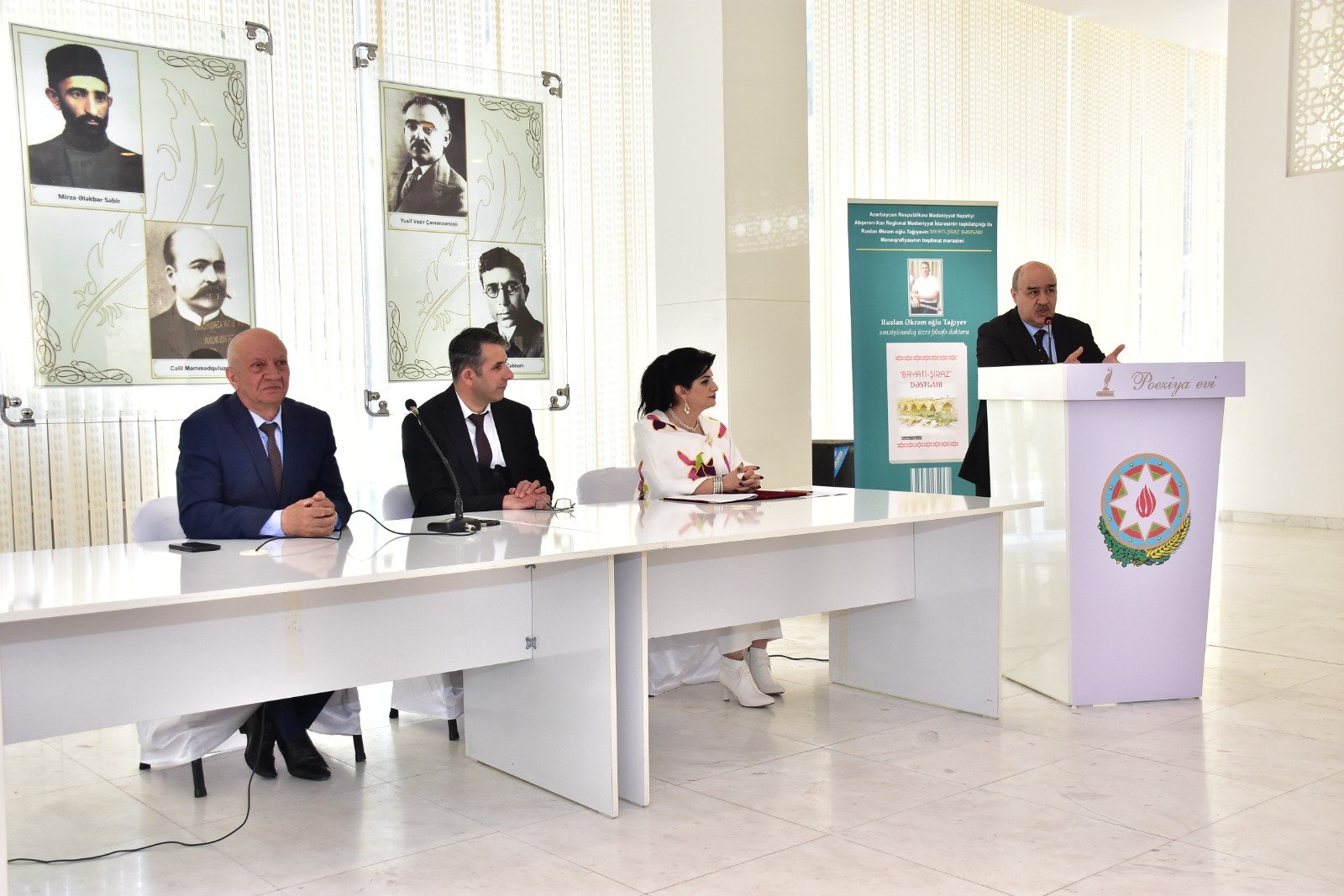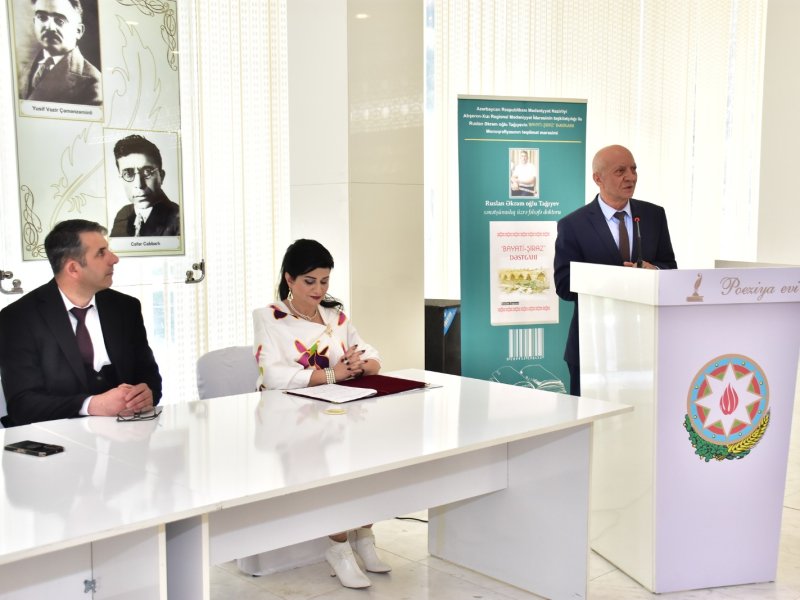 26.04.2026-cı il tarixində Ə.Kərimov adına Sumqayıt şəhər Poeziya evində Sənətşünaslıq üzrə fəlsəfə doktoru Ruslan Tağıyevin 2026-cı ildə işıq üzü görmüş “Bayatı-Şiraz” dəstgahı elmi monoqrafiyasının təqdimat mərasimi keçirilib.